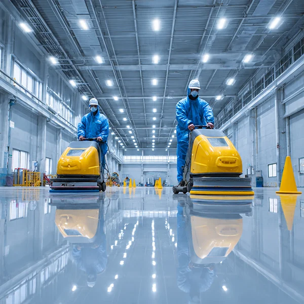 Heavy-duty industrial cleaning solutions for warehouses, factories, and manufacturing facilities with specialized equipment and safety-first approach.